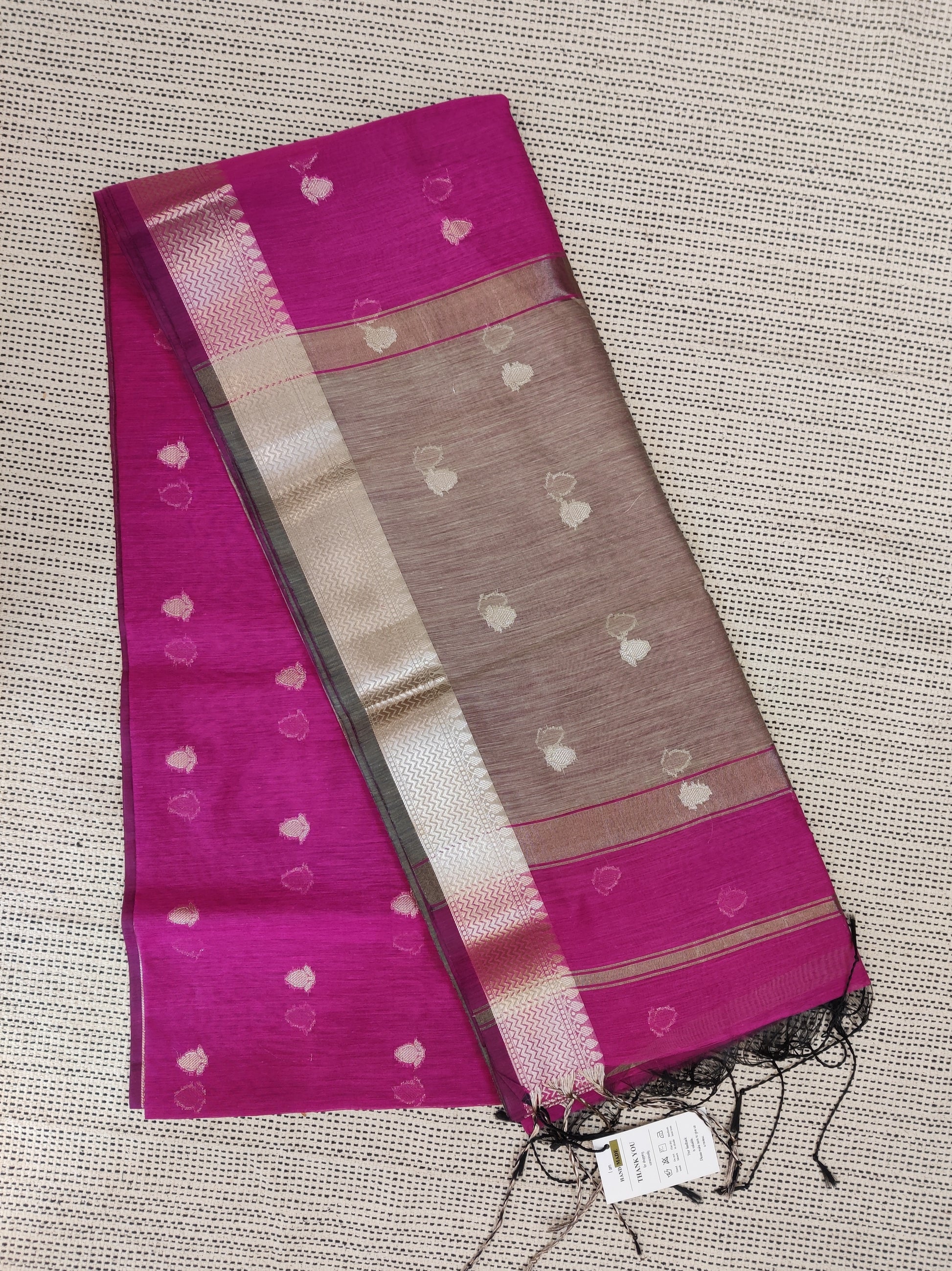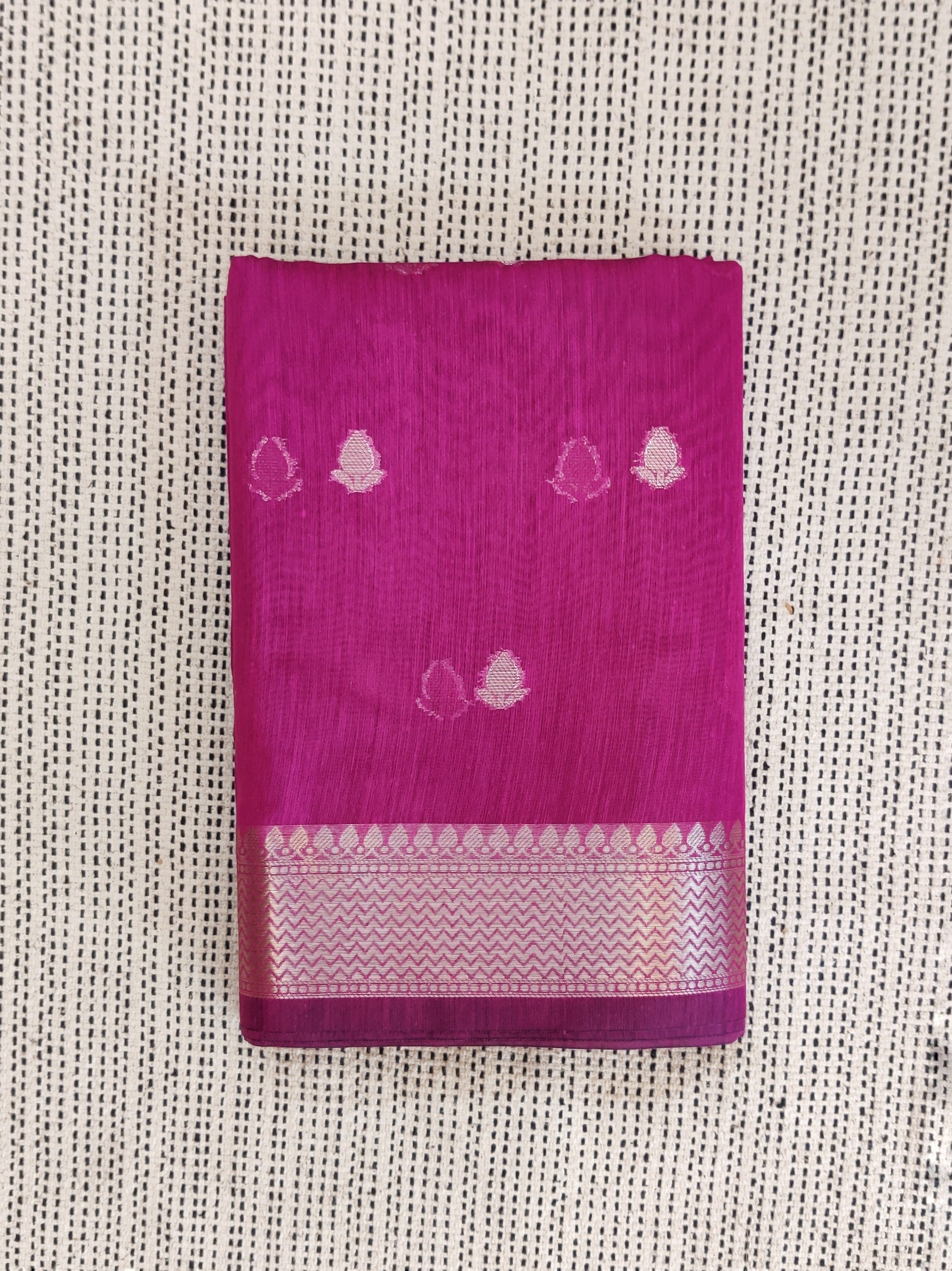 Soft, elegant, and effortlessly graceful—this mul cotton Banaras saree is crafted for special moments. The fine weave offers a gentle drape, while the Banarasi-inspired detailing adds a festive charm. Paired with a contrast blouse that matches the pallu, it’s a perfect choice for occasion wear with understated class.