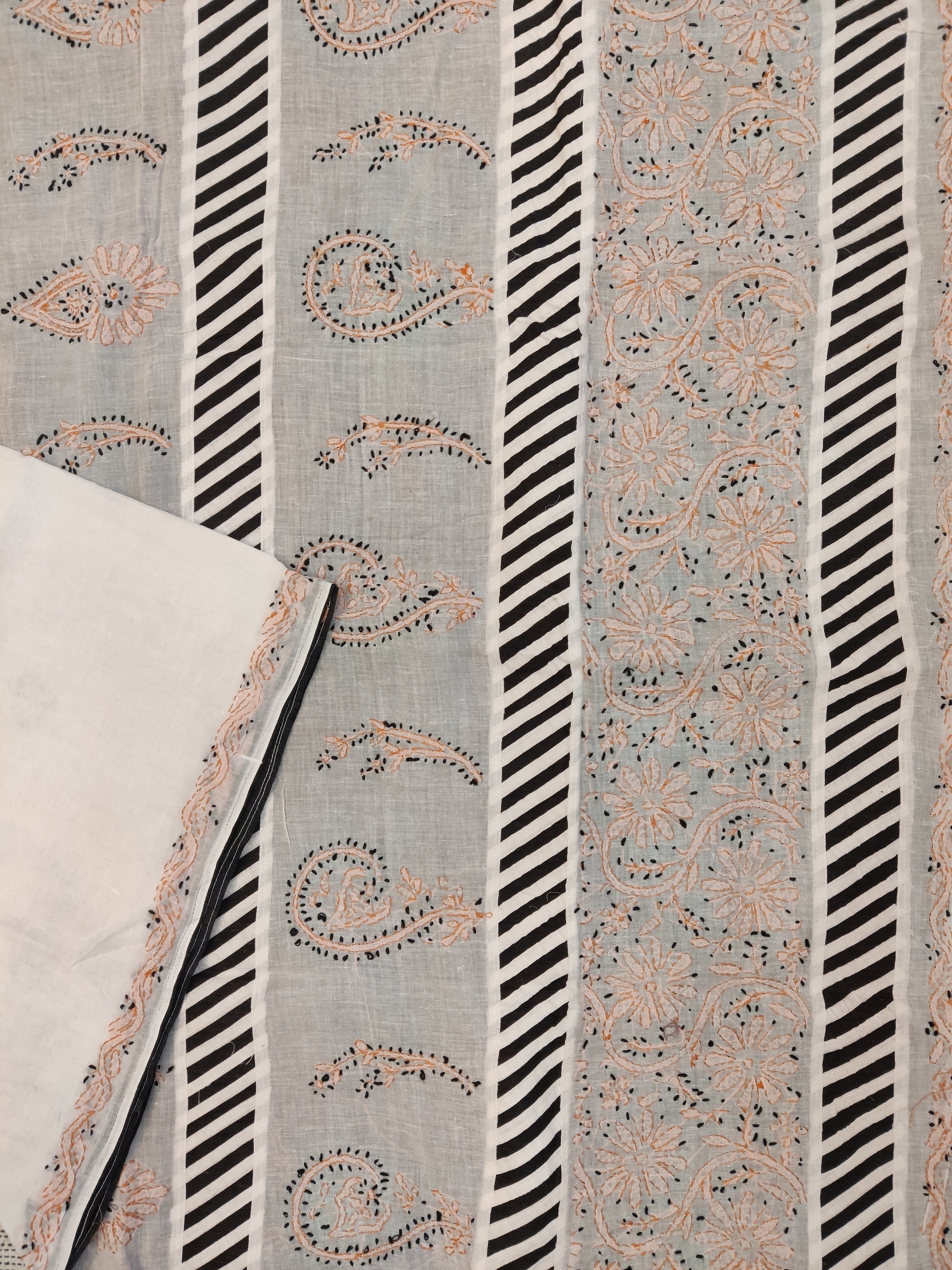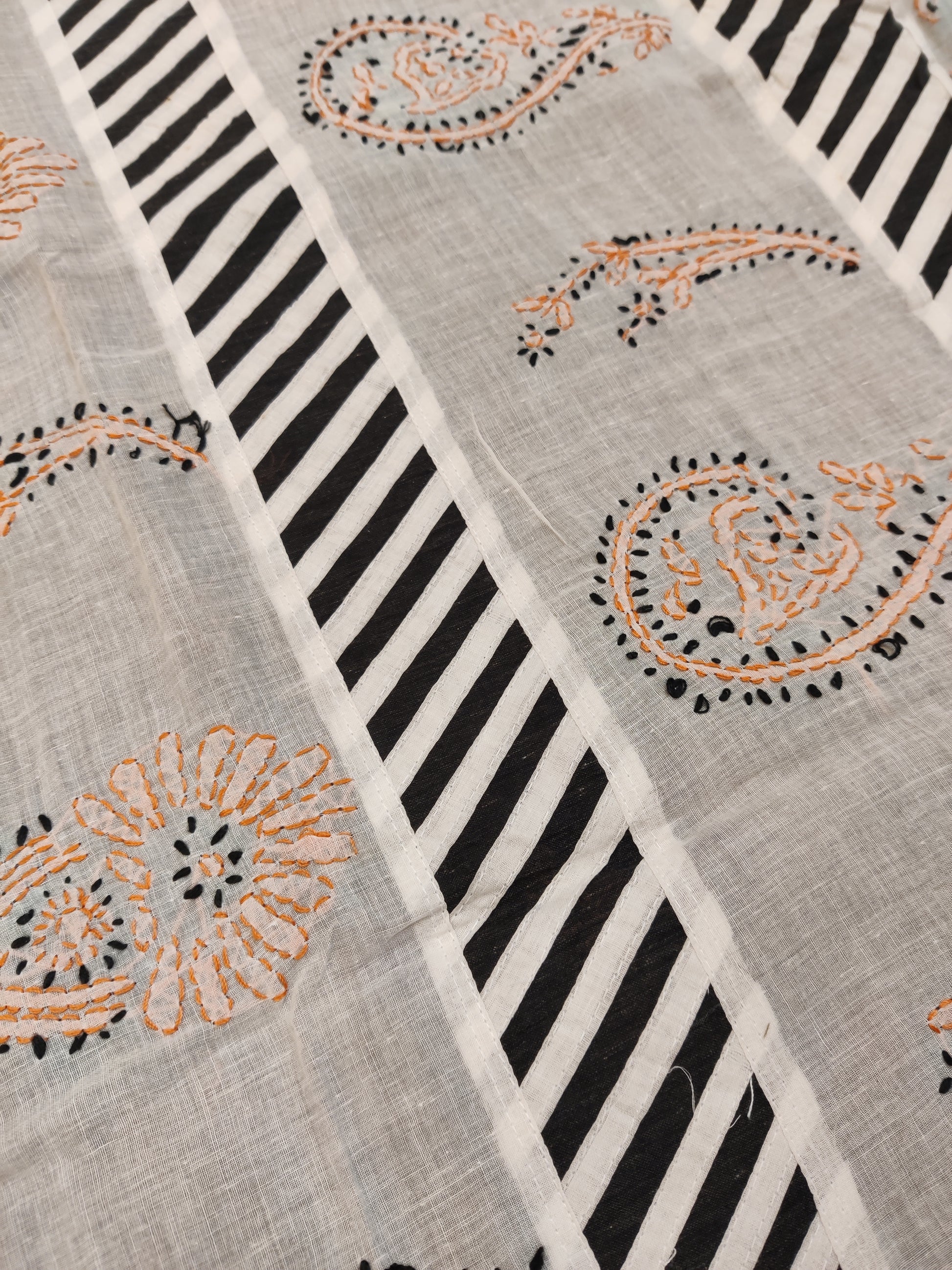 Delicate and timeless, this Chikankari handwork saree brings the elegance of Lucknowi craftsmanship to your wardrobe. Intricately embroidered motifs flow across a soft fabric base, creating a graceful drape that’s perfect for both everyday sophistication and special occasions.