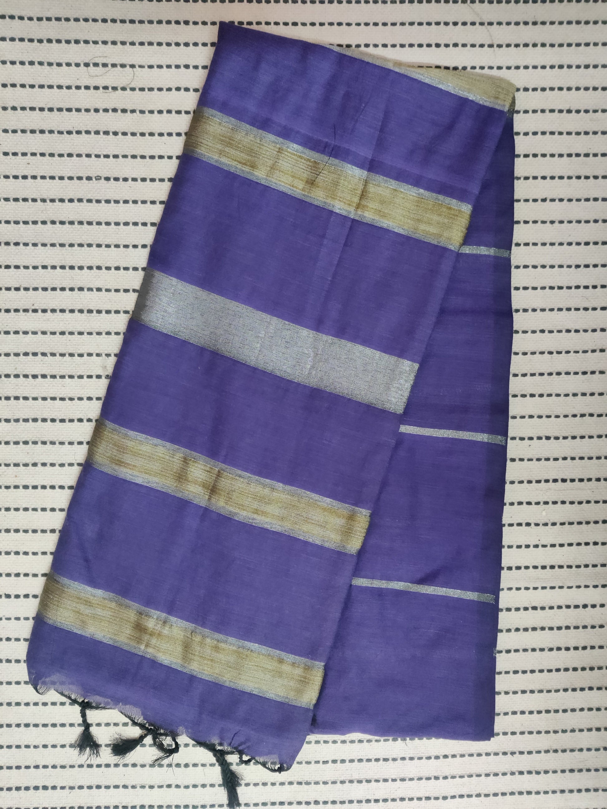 Understated elegance meets handwoven charm. This Khadi Cotton saree features delicate silver stripes running across the body and copper zari stripes on the pallu that add a subtle shimmer. Designed without a border for a clean, contemporary look. Comes with a plain running blouse piece for effortless styling.